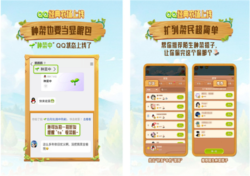 社交属性的强化,是此次回归的另一大亮点。通过融合“拍一拍”、聊天状态同步、扩列好友等当下QQ用户喜爱的玩法,打造更具沉浸感的好友互动体验。具体而言,偷取好友作物后,可触发QQ“拍一拍”提醒,通知被偷菜的好友第一时间上线“复仇”,互动趣味翻倍;新增“种菜中”标识,可直接展示在聊天窗口与个人资料卡,让好友一眼洞悉你的农场动态,做列表里的“种菜显眼包”;更有“可能认识的农场玩家”精准推荐,一键添加QQ好友中的同款菜友,从此偷菜、互助不孤单,轻松扩列专属农场社交圈。